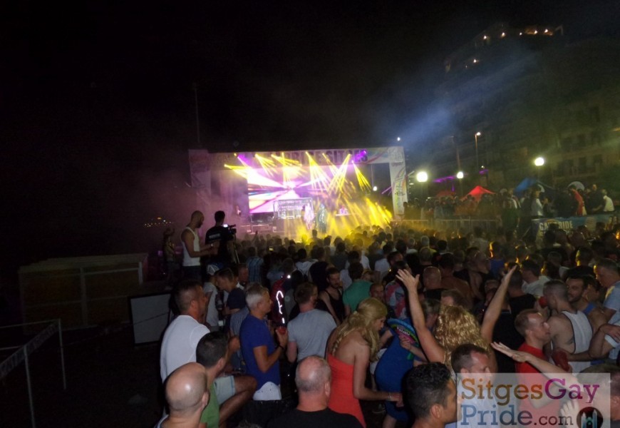 In the Gay Village, open air on Sitges promenade, alongside the beach.
